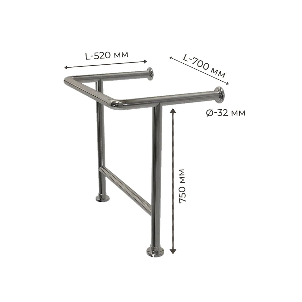 Поручень для людей с инвалидностью (МГН) для раковины напольно-настенный INVO с защитой слива, размер 700х750 мм, D трубы – 32 мм
