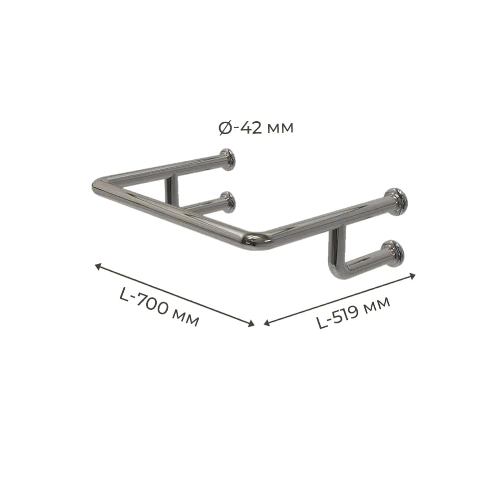 Описание Поручень для людей с инвалидностью (МГН) на стену для раковины INVO верхний из нержавеющей стали, размер 700х519 мм, D трубы – 42 мм.