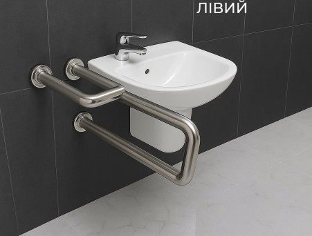 Поручень для раковины настенный боковой INVO создан для обеспечения дополнительной безопасности и комфорта людей с ограниченными возможностями, инвалидов, пожилых людей и проходящих реабилитацию.