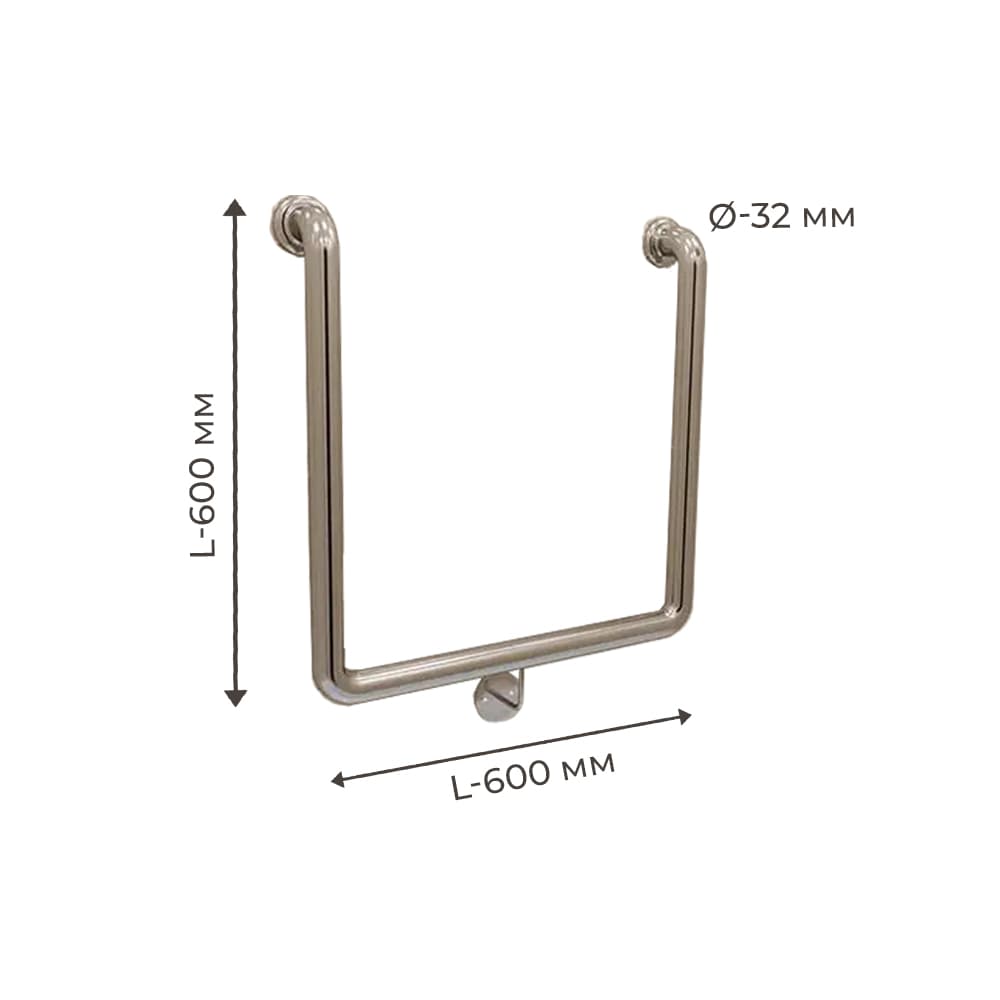 Описание Поручень для людей с инвалидностью (МГН) настенный INVO П-образный, размер 600х600 мм, D трубы – 32 м