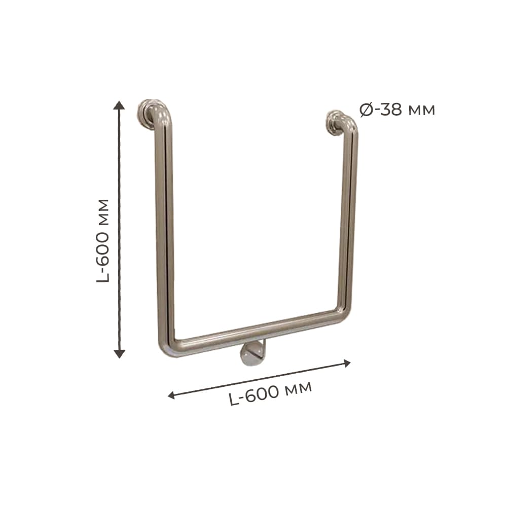 Описание Поручень для людей с инвалидностью (МГН) настенный INVO П-образный, размер 600х600 мм, D трубы – 38 м