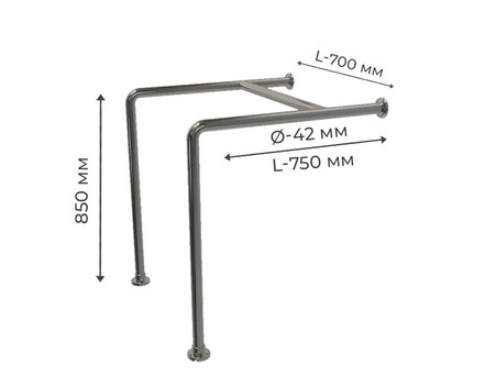 Описание Поручень для людей с инвалидностью (МГН) напольно-настенный двойной INVO унитазу, размер 750х850 мм, D трубы - 42 мм