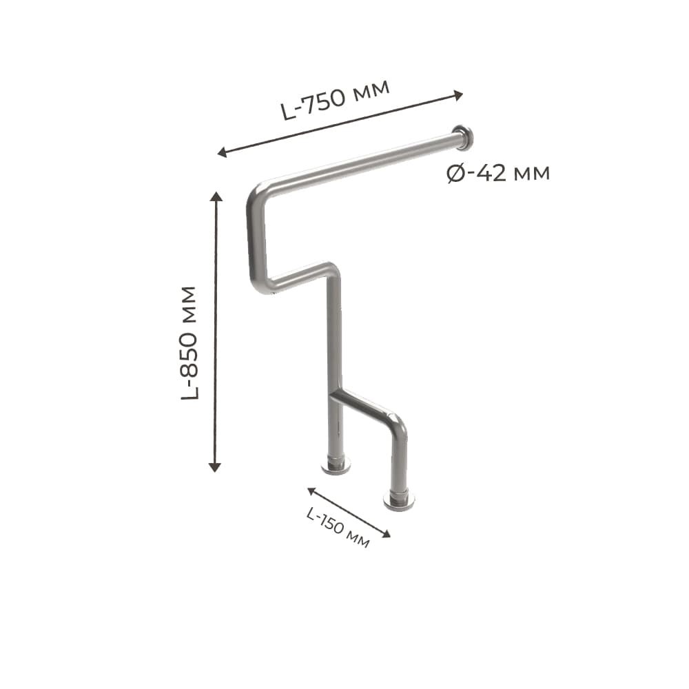 Описание Поручень для людей с инвалидностью (МГН) правый и левый напольный INVO для туалета с 2 опорами, размер 750х850 мм, D трубы 42 мм