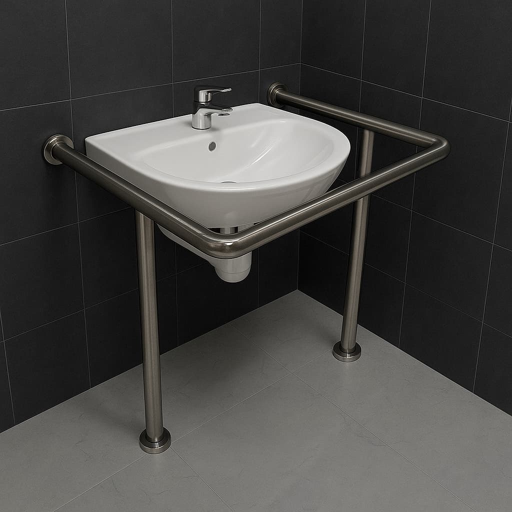 Поручений для раковины напольно-настенный две опоры INVO создан для обеспечения дополнительной безопасности и комфорта людей с ограниченными возможностями, инвалидов, пожилых и проходящих реабилитацию.