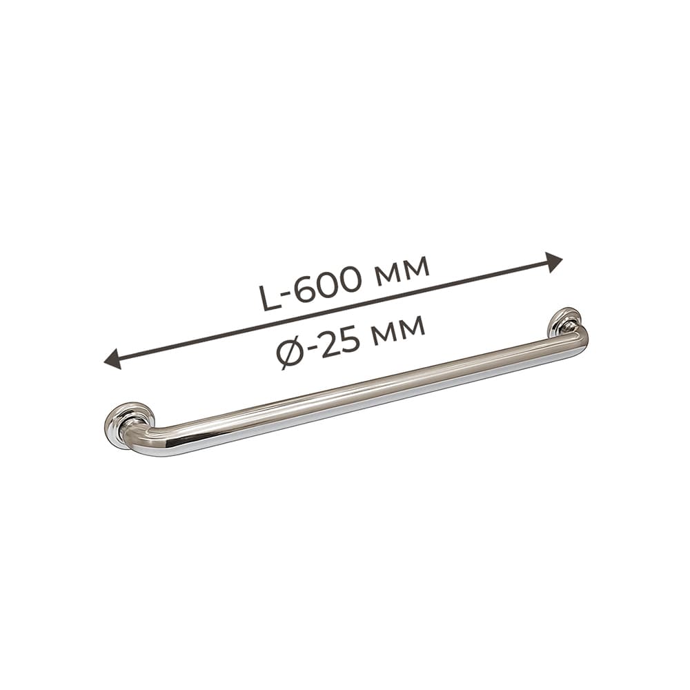 Поручень для людей с инвалидностью (МГН) прямой настенный INVO из нержавеющей стали, L-600 мм, D трубы - 25 мм
