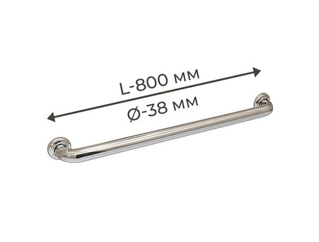 Описание Поручень для людей с инвалидностью (МГН) прямой настенный INVO из нержавеющей стали, L-800 мм, D трубы – 38 мм