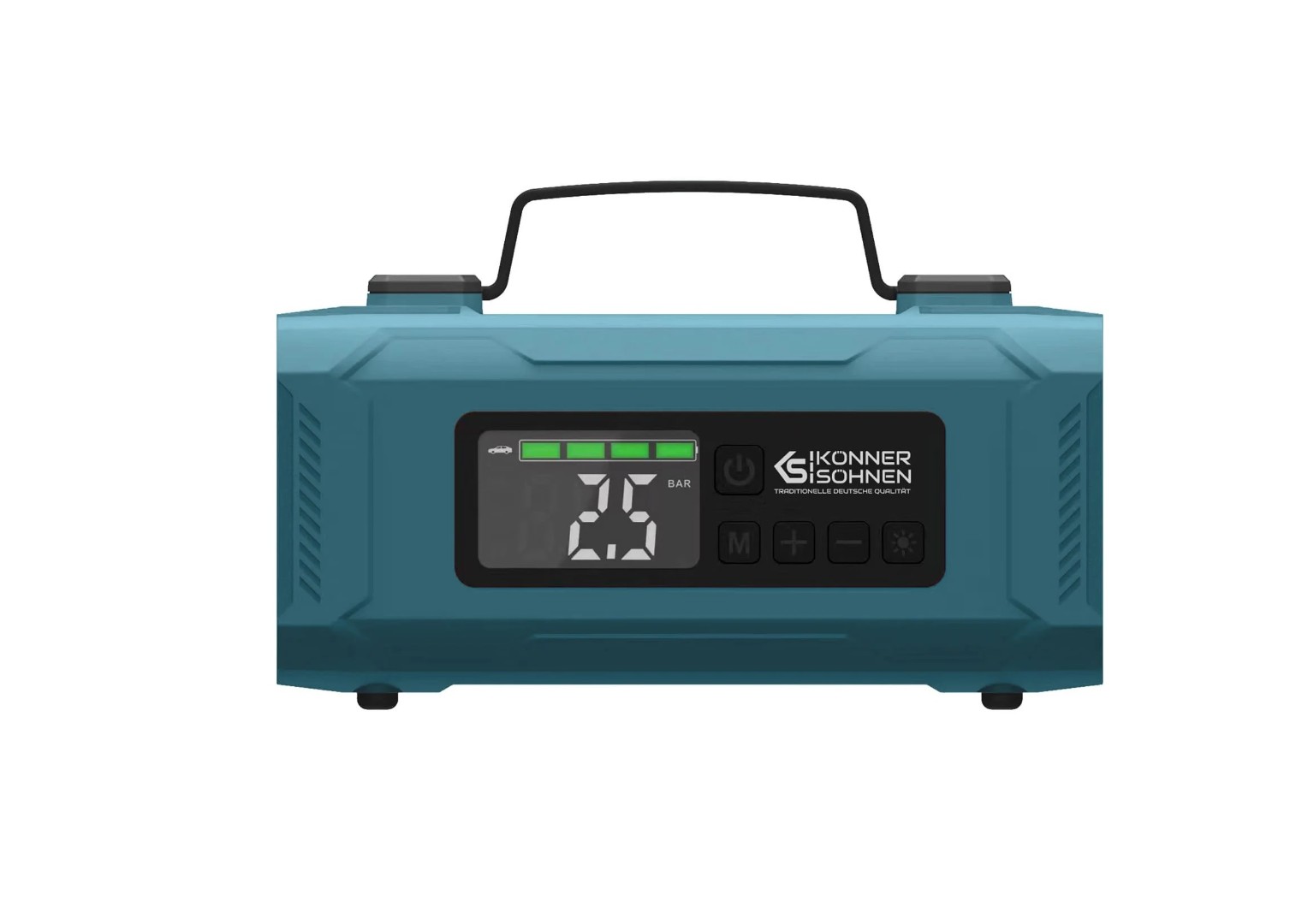 Немецкая ТМ Könner & Söhnen представляет вашему вниманию пускозарядное устройство с аккумуляторным компрессором 4 в 1KS JSP-2000 - это незаменимое мультифункциональное устройство для вашего авто. Он сочетает в себе функции пускового устройства и зарядного устройства для аккумуляторов бензиновых или дизельных авто, функцию аккумуляторного компрессора для широкого спектра задач, а также может выполнять функцию повербанка и фонаря. Техника немецкой ТМ Könner & Söhnen уже успешно продается более чем в 20 странах Европы, прошла многолетнее испытание привередливыми европейскими потребителями и имеет множество положительных отзывов.