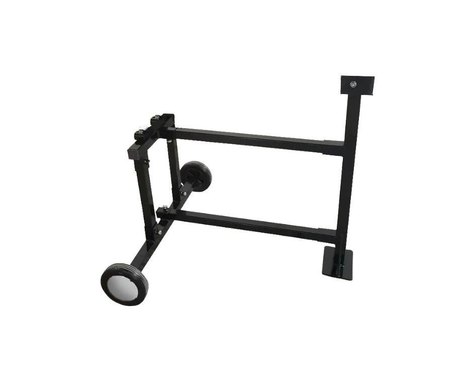 Подставка из углеродистой стали имеет надежную разборную конструкцию, отличается высокой устойчивостью, оснащена колесами для транспортировки.