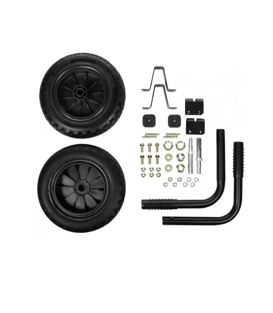 Представленный транспортировочный набор состоит из колес, рукояток и специальных креплений, которыми оснащают генератор для большего удобства в процессе эксплуатации и возможности транспортировки. Аксессуары характеризуются высоким качеством исполнения и легкостью монтажа.