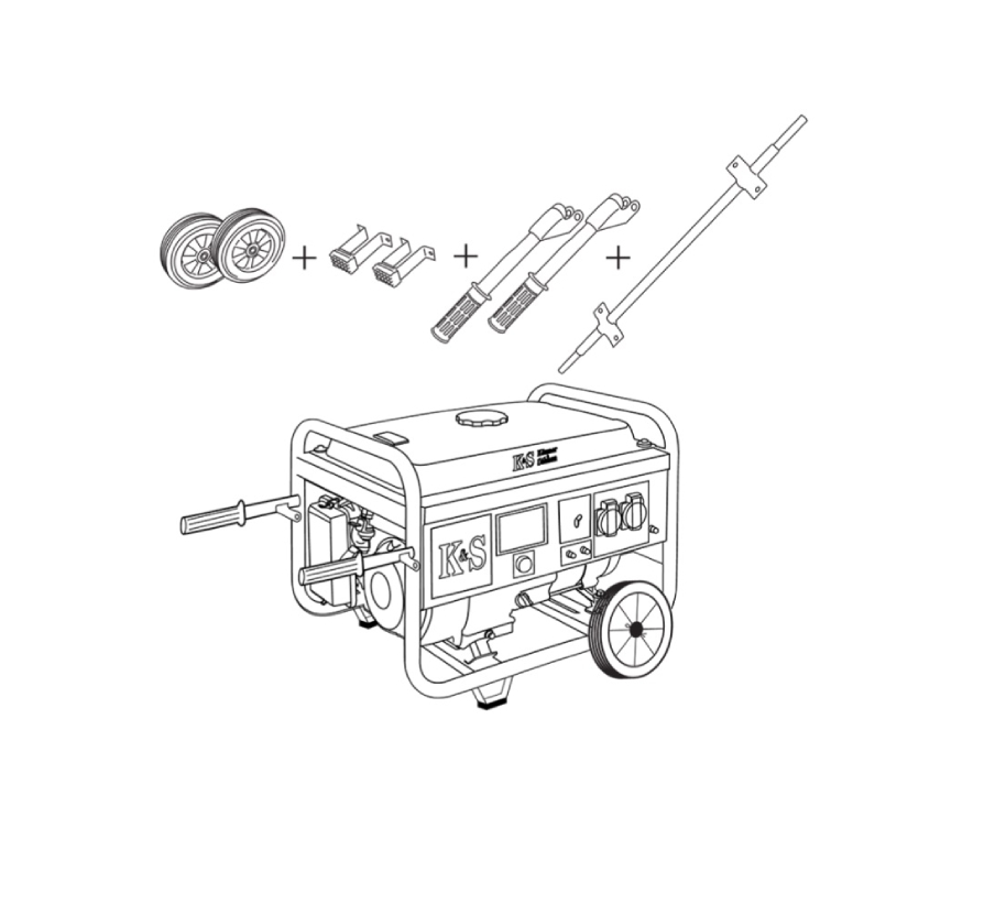 Набор подходит для всех модификаций бензиновых генераторов: KS9000, KS10000 (рама Ø32) и всех модификаций дизельных генераторов1 KS 9100 (рама Ø32).