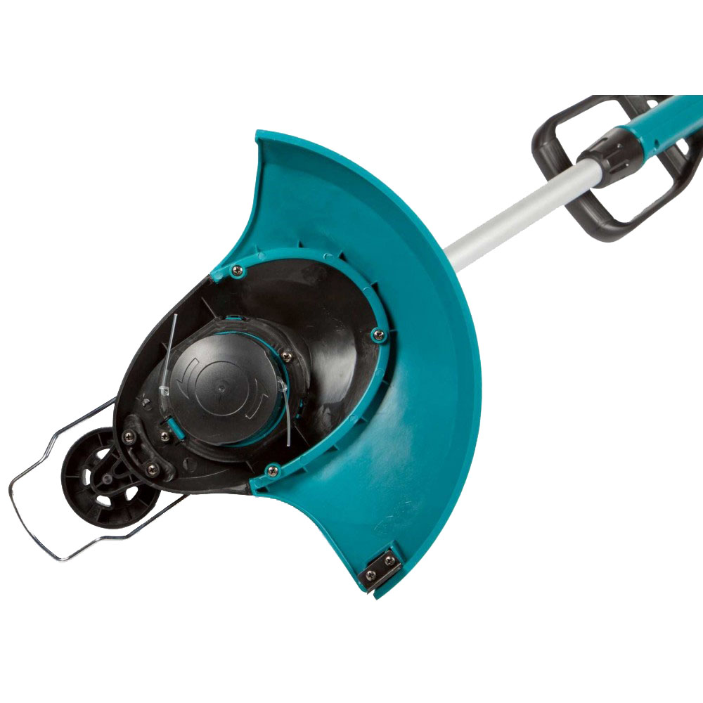 - Защитный кожух. Защищает ноги от выброса травы, корректирует подачу лески на нужную длину.