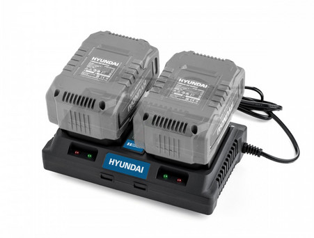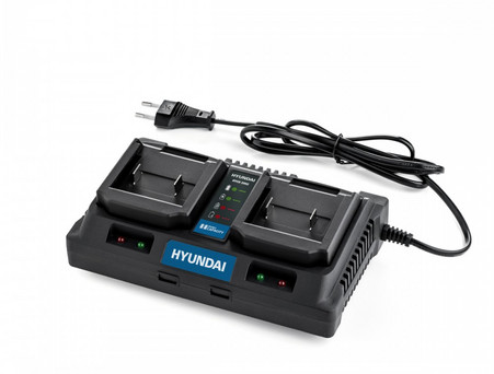 Основні переваги:одночасне заряджання двох акумуляторів.Повна сумісність із акумуляторами Hyundai 20V (серії HYBH).Незалежне управління кожним каналом.LED-індикатори стану зарядки.Захист від перегріву, перенапруги, короткого замикання.Ідеальний для моделей 2 А·год і 4 А·годХарактеристики - Зарядний пристрій Hyundai HYCH 2002